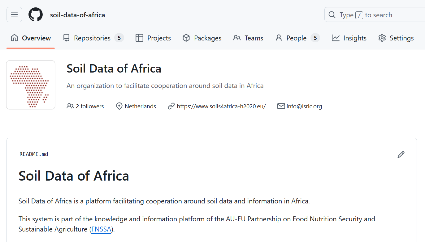 The organisation hosts repositories related to various tools used in Soil data of Africa infrastructure.